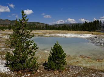 Keywords: yellowstone national park wyoming usa landscape scenery tourist attraction erosion geyser nature volcanic minerals water steam volcanism hot geothermal pond colorful