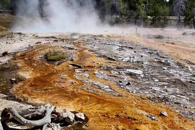 Keywords: yellowstone national park wyoming usa landscape scenery tourist attraction erosion geyser nature volcanic minerals water steam volcanism hot geothermal deep blue pond colorful
