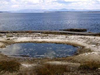 Keywords: yellowstone national park wyoming usa landscape scenery tourist attraction erosion lake steaming geyser nature volcanic minerals water steam volcanism hot geothermal pond colorful