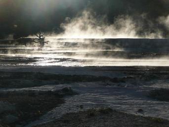 Keywords: yellowstone national park wyoming terrace thermal mineral deposit geological formation steam hot water limestone landscape scenery tourist attraction water bright