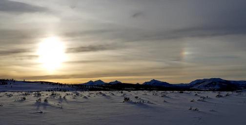 Keywords: yellowstone national park wyoming landscape scenic destinations travel beautiful nature outdoors country wilderness hdr panorama sun dog sunset dusk snow winter mountains sky clouds
