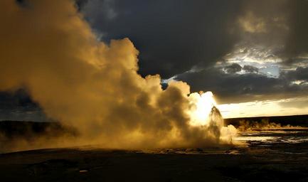 Keywords: yellowstone national park wyoming landscape scenic destinations travel beautiful nature outdoors country wilderness hdr sunset dusk geyser steam geological sky clouds