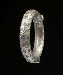 | Keywords: Yemeni - Bracelet - Walters 572324 - View A.jpg The chased bracelet is made of a larger 2/3 and a smaller piece 1/3 that together form a hollow ring The decoration is that of a rhombic pattern with a cross-shaped design inside of the rhombi of the central row The other rhombi are either gilded or filled with green enamel The bracelet is very similar to Walters 57 2320 On the inner side of the bracelet is an Arabic stamp with the name of the ruler and date al-Mansur xxx4 Al-Mansur Ali I ruled from AH 1189 to 1224 AD 1775-1809 1189-1224 AH/AD 1775-1809 silver with gilding green enamel Outer diam cm 7 1 ; Inner diam 2 x W 9/16 in 5 1 x 1 4 cm accession number 57 2324 80928 Mr Benjamin Zucker Zucker Family Trust and Mr Derek Content New York and London by purchase Walters Art Museum Joint gift to the Walters Art Museum Baltimore and the Israel Museum Jerusalem by Mr Benjamin Zucker and Mr Derek Content in honor of Mrs Barbara Zucker and Mrs Amanda Content 2010 Stamp Arabic al-Mansur xxx4 place of origin Taizz Yemen Walters Art Museum license Jewellery in the Walters Art Museum South Arabian art in the Walters Art Museum Art of Yemen Media contributed by the Walters Art Museum needs category review |