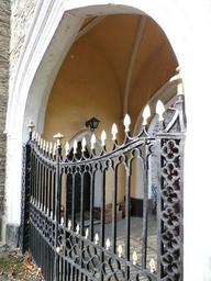 | Keywords: YeotownGatehouse Gates IvyLodge Goodleigh Devon.JPG Gatehouse circa 1807 known today as Ivy Lodge of demolished Yeotown House in the parish of Goodleigh North Devon Cast-iron gates hanging from open-work gateposts decorated with quatrefoils Yeotown is situated in the sequestered wooded valley of the small River Yeo about 3 miles south-west of the village of Goodleigh The mansion house formerly owned by the Beavis family was remodelled in about 1807 in the neo-gothic style by Robert Newton Incledon 1761-1846 husband of Elizabeth Beavis and eldest son of Benjamin Incledon 1730-1796 of Pilton House Pilton near Barnstaple an antiquarian and genealogist and Recorder of the Borough of Barnstaple 1758 “1796 It was demolished during his lifetime and today only one of the large gatehouse survives since converted into a farmhouse known as Ivy Lodge 2000-12-18 own assumed Lobsterthermidor Yeotown Goodleigh Gates in Devon |