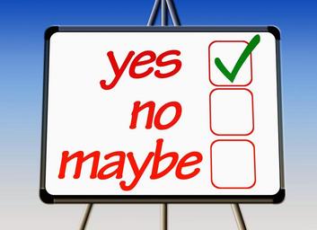 Keywords: yes consent hook check mark board flipchart presentation ticked off box cross ankreuzen select choice list checklist no maybe possibly possible opportunity decision alternative will