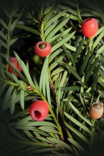 Keywords: yew taxus plant bush periwinkle yew family taxaceae conifer seeds red meaty seed coat cup shaped toxic ingredients taxin b