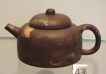 | Keywords: Yixing teapot, China, Yanqiao, Yang Pengnian, Qing dynasty, c. 1800-1835, stoneware - Royal Ontario Museum - DSC03855.JPG en Exhibit in the Royal Ontario Museum Toronto Ontario Canada This work is old enough so that it is in the public domain Photography was permitted in the museum without restriction 2013-10-08 14 06 53 own Daderot cc-zero Yixing ware in the Royal Ontario Museum Uploaded with UploadWizard | ||||