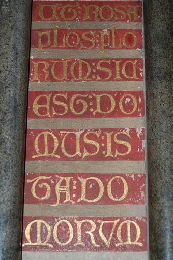 | Keywords: York Minster Chapter House inscription.jpg Latin inscription in the Chapter House of York Minster Ut rosa flos florum sic est domus ista domorum means Like the rose is the flower of flowers so this house is that of houses Own 2007-12-12 Steven Fruitsmaak at request 53 57 43 N 1 4 55 W scale 1000_region GB Chapter house of York Minster Inscriptions in North Yorkshire Latin inscriptions in England | ||||