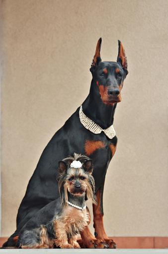 Keywords: yorkshire terrier doberman dogs portrait friendship poesing animals pets also have
