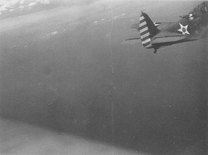 | Keywords: Yorktown TBD Huon Gulf gunner.jpg en A U S Navy Douglas TBD-1 Devastator aircraft of torpedo squadron VT-5 from the aircraft carrier USS Yorktown CV-5 flying over the Huon Gulf near New Guinea on 10 March 1942 during an attack on Japanese shipping supporting the invasion of Lae-Salamaua The TBD-1 was piloted by Lieutenant Commander Joe Taylor with CRM PA Harrison S Nobbs as radio-gunner Scanned from book Cressman Robert 2004 That Gallant Ship USS Yorktown CV-5 Pictorial Histories Publishing Company p 76 Official U S Navy photo no 95442 USN 1942-03-10 PD-USGov-Military-Navy Douglas TBD Devastator New Guinea campaign |