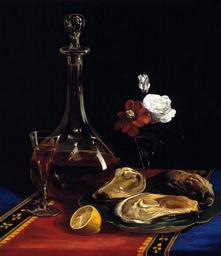 | Keywords: You Go First Volck.jpg You Go First still life by Adalbert John Volck showing decanter of wine oysters small vase of flowers slice of lemon Oil on canvas painting by Adalbert John Volck via http //www askart com/askart/artists/search/inquiry aspx artist 24570 ad 125942 searchtype ART_FOR_SALE 1874 Adalbert John Volck PD-Art-100 1874 paintings in the United States Adalbert John Volck Decanters Paintings of wine Still life paintings with oysters Paintings of lemons 1870s still-life paintings |