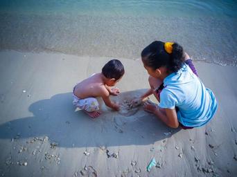 Keywords: young children play sand beach