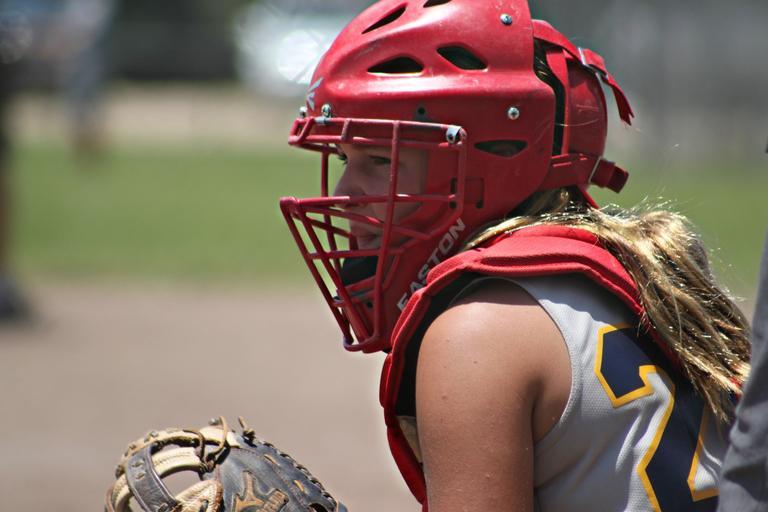 Keywords: young girl catcher softball outdoor player sport gear athlete athletic season