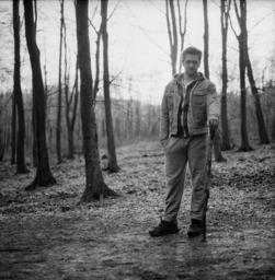Keywords: young man male man wood young hiking lifestyle handsome young man standing guy attractive forest path