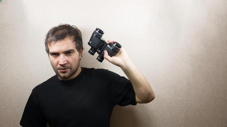 Keywords: vision man view search human guy spyglass business character people one figure lens holding found look person binocular observe male handsome monitoring copy space