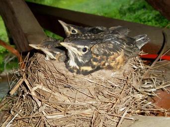 | Keywords: Young Robins 03.jpg en Young American Robins in a nest about a week and a half old Taken in Delaware County New York USA 2012-05-31 own GeekOnTheWing I Geek On The Wing am the creator of this image and I hereby release it to the public domain cc-zero Turdus migratorius nests with chicks Uploaded with UploadWizard |
