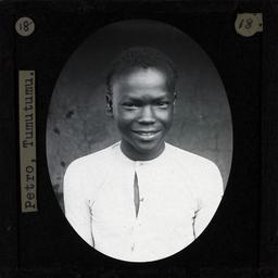 "Petro, Tumutumu" Portrait photograph of a young woman named Petro. She is wearing white and the image is a head and shoulders photograph.; This belongs to a series of Church of Scotland Foreign Missions Committee lantern slides relating to the Kikuyu Mission in Kenya, which was set up by Church of Scotland missionaries. Hospitals were established by Scottish missionaries in Kikuyu in 1908, in Tumutumu in 1909, and in Chogoria in 1922. The missionaries also introduced the Presbyterian Church to the area. The Kikuyu are Kenyaas most populous ethnic group.