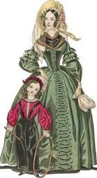 | Keywords: YoungGentlemansDressMorningVisitingDress.jpg YOUNG GENTLEMAN'S DRESS FIG 2--Crimson merinos vest ; and pantaloons of black satin striped coutil Velvet cap trimmed with an ostrich feather MORNING VISITING DRESS FIG 3--Green satin robe ; a high corsage trimmed with velvet and a row of interlaced satin rouleaus Sleeve of the bell form at top with a trimming of folds The front of the skirt is decorated en serpente with satin rouleaus Black velvet pelerine of a small size and of the heart form ; it is bordered with sable Hat of oiseau velours épinylé ; an aureole brim decorated with twisted ribbon and satin foliage ; ribbon and a gerbe of roses adorns the crown THE WORLD OF FASHION December 1838 PD-Art Mothers and sons in art Hoops in art Hoop rolling Velvet Fashion in 1838 Artworks missing infobox template Fashion plates depicting children 1838 Fashion plates 1838 |