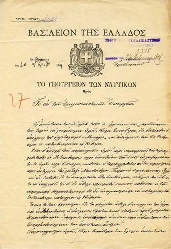 | Keywords: Ypourgeio Naftikon Ministry of Naval Affairs document about the Antikythera wreck 1901.jpg en The Greek Ministry of the Seas Ypourgeio Naftikon 26/2/1901 concerning the mission of vessel Mykali at Kythera for the Antikythera wreck works el Ε ικοινωνία του υ ουργείου αυτικών 26/02/1901 σχετικά με την α οστολή του λοίου « υκάλη» στα Κύθηρα http //www kythera-family net/index php nav 226 cid 566 did 20093 http //www athinorama gr/galleries/default aspx id 10014988 section daylife Το ναυάγιο των Αντικυθήρων Το λοίο οι θησαυροί ο μηχανισμός έκθεση του 2012 του Αρχαιολογικού μουσείου http //www athinorama gr/galleries/default aspx id 10014988 section daylife as issued by the Archaelogical Museum of Athens concerning the 2012 special exhibition of artifacts fro the Antikythera wreck Ministry of the Seas Greece 1901-02-26 Antikythera wreck 1901 in Greece Government documents of Greece Ministry of Naval Affairs Greece PD-old-100 |