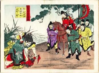 | Keywords: Yu Rang cuts the robe, ascribed Nobukazu.jpg en Loyal Assassin Yu Rang to avenge his lord Zhi Bo cuts the dress of Viscount Zhao Xiangzi three times 2016-03-31 20 01 02 Watanabe Nobukazu cf http //archive library metro tokyo jp/da/detail tilcod 0000000004-00000240 Item No 0871-S1 - Sugoroku book of unknown Meiji ukiyo-e artist possibly Watanabe Nobukazu titled Comparison of Famous Men of Wisdom and Courage from Japan and China Created around 1895 published 1895 unknown Author possibly Watanabe Nobukazu died 1944 other versions PD-old-70-1923 History of China Ukiyo-e Chinese culture |