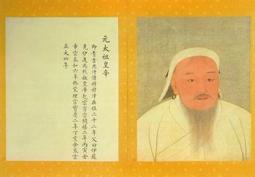 | Keywords: YuanEmperorAlbumGenghisFull.jpg Emperor Taizu of Yuan better known as Genghis Khan Page from an album depicting several Yuan emperors Yuandai di banshenxiang now located in the National Palace Museum in Taipei inv nr zhonghua 000324 Original size is 116 1 cm wide and 74 1 cm high Paint and ink on silk For the portrait cropped out see Image YuanEmperorAlbumGenghisPortrait jpg 元太祖皇 ,即 吉斯汗,諱特穆津, 位二十二年 父曰伊蘇克伊是為烈祖皇 起宋甯宗開禧二年丙寅,金章宗泰和六年;終宋理宗寶慶二年丁亥, 宗正大四年 Emperor Taizu of Yuan i e Genghis Khan personal name Temujin reigned 22 years His father is Yesugei that is Emperor Liezu He reigned from the 2nd year of Kaixi era of Emperor Ningzong of Song Bingyin or the 6th year of Taihe era of Emperor Zhangzong of Jin ca 1206 to the 2nd year of Baoqing era of Emperor Lizong of Song Dinghai or 4th year of Zhengda era of Aizong of Jin ca 1236 unknown / of the reproduction National Palace Museum in Taipei Dschingis Khan und seine Erben exhibition catalogue München 2005 p 304 century 14 PD-Art Portraits of Emperors of the Yuan Dynasty Genghis Khan Paintings in the National Palace Museum |