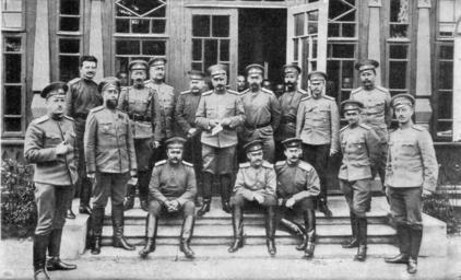 | Keywords: Yuri Danilov Stavka.jpg en Russian General Headquarters Quartermaster-General General of Infantry Y N Danilov and his management ranks ru Ставка Ве ховного Главнокомандующего Гене ал-ква ти мейсте гене ал-от-инфанте ии Ю Данилов и чины его уп авления Жу нал Летопись войны Выпуск 13 1914 Фот И Е Д емина PD-old Yuri Nikiforovich Danilov Russian GHQ in World War I Group photographs of military people | ||||