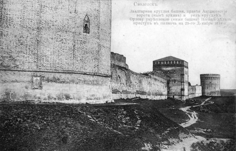 | Keywords: Zaaltarnaya, Avraamievskaya and Eagle Tower.jpg en In the foreground - the base of the tower Zaaltarnoy Smolensk fortress wall In the background - the tower Avraamievskaya and Eagle ru а пе еднем плане - основание Заалта ной башни Смоленской к епостной стены а заднем плане - башни Ав аамиевская и О ёл О игинальная отк ытка е установлены before 1917 года PD-RusEmpire 20th-century postcards Postcards of Smolensk Zaaltarnaya Tower Avraamievskaya Tower Eagle Tower | ||||