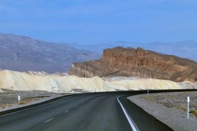 Keywords: zabriskie zabriskie point death valley california usa tourist attraction landscape sand stone nature scenery erosion hot dry desert paved road