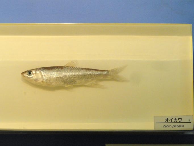 | Keywords: Zacco platypus - Osaka Museum of Natural History - DSC07760.JPG en Exhibit in the Osaka Museum of Natural History Osaka Japan Photography was permitted in the museum without restriction Daderot 2012-08-27 22 13 50 Daderot cc0 cc0 Fish in the Osaka Museum of Natural History Zacco platypus |