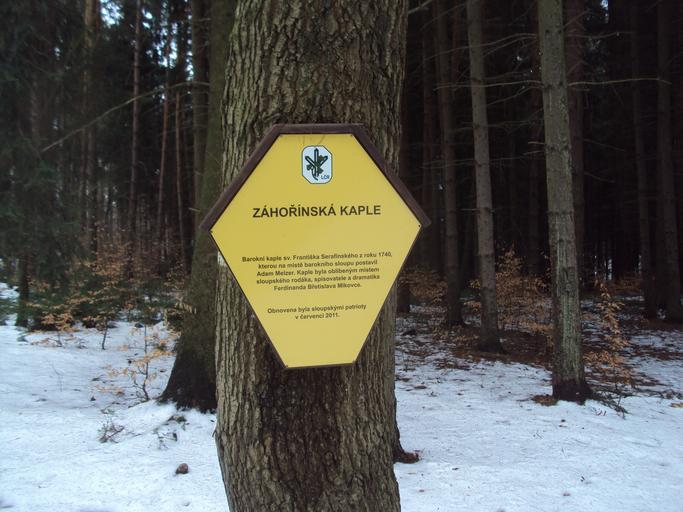Keywords: Záhořínská kaple 3.JPG cs Cedule u kaple own Zákupák 2013-03-07 Záhořínská kaple