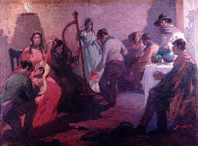 | Keywords: Zamacueca por Arturo Gordon.jpg  Artwork oil on canvas cm 56 77 Institution Museo Nacional de Bellas Artes Chile object history credit line accession number http //www portaldearte cl/img/obr/phag002e jpg PD PD-old-auto 1944 Arturo Gordon Paintings in the Museo Nacional de Bellas Artes Chile Uploaded with UploadWizard Cueca chilena |