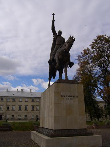 Keywords: Zamoyski Statue.jpg A statue of Jan Zamoyski in Zamość own 2007-10 Aszumila Zamoyski family Renaissance architecture in Poland Jan Zamoyski Monument in Zamość Equestrian statues with 3 legs on ground