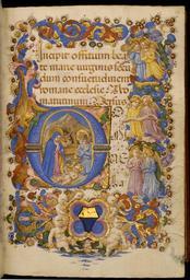 | Keywords: Zanobi di Benedetto Strozzi - Leaf from Adimari Book of Hours - Walters W76715R - Open Obverse.jpg ink paint gold parchment cm 13 4 9 4 accession number W 767 15R 28250 The Adimari family Florence ca 1448 family coat of arms on fol 15r Reverend Walter Sneyd prior to December 16 1903 mode of acquisition unknown Sale Sotheby's London December 16 1903 lot 555 note on rear paste-down Charles Fairfax Murray December 16 1903 by purchase C W Dyson Perrins 1906 Sale Sotheby's London December 1 1959 lot 80 Walters Art Museum Baltimore December 1 1959 by purchase Museum purchase 1959 The Nativity in Medieval and Renaissance Manuscripts The Walters Art Gallery Baltimore 1987-1988 place of origin Florence Italy Walters Art Museum license 2D Walters MS W767 - Adimari Book of Hours Miniatures of the nativity of Jesus Christ |