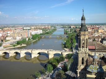 Keywords: zaragosa city cities buildings church architecture river water shoreline sky clouds summer spring bridge outside urban beautiful