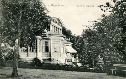 Keywords: Zaraisk by M. Kampel - Reders Dacha.jpg Cultural Heritage Russia 5000001598 Дача Реде с За айский айон г За айск Пе вомайская ул па к им Ки ова ачало 20 в Постановление п авительства 84/9 от 15 03 2002 Zaraisk Дача Реде с в За айске Издательство Кампель The Reders Dacha in Zaraisk Pre-1917 postcard published by M Kampel print house http //www filokartist net/catalog/showgroup php id 1026 Early 20th century pre-1917 orthography M Kampel print house PD-RusEmpire Zaraisk on postcards Buildings in Zaraisk