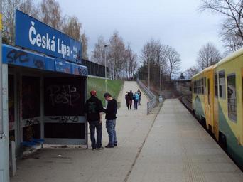 Keywords: Zastávka Holý vrch z peronu.jpg cs Vlaková zastávka Holý vrch na okraji České Lípy own Zákupák 2010-04-10 Česká Lípa-Holý vrch train station CZ Class 814 of ČD