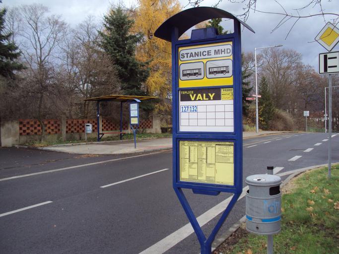 | Keywords: Zastávka MHD Valy.jpg cs Autobusová zastávka ve čtvrti Valy u Letné v Teplicích own Zákupák 2010-11-14 Bus stops in Teplice Trolleybus stops in Teplice Bus stop signs in the Czech Republic Trolleybus stop signs in Teplice Public waste baskets in the Czech Republic Rooseveltova Teplice U Zámecké zahrady Teplice |