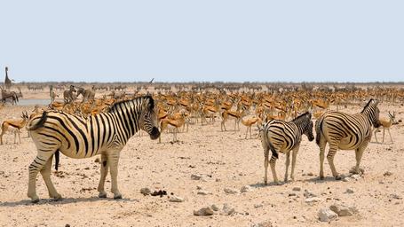 Keywords: zebra africa springbok namibia nature dry national park water hole animals