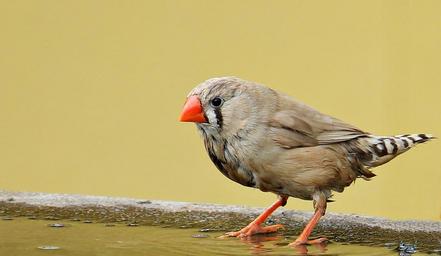 Keywords: zebra finch bird red beak bill water bottle animal world