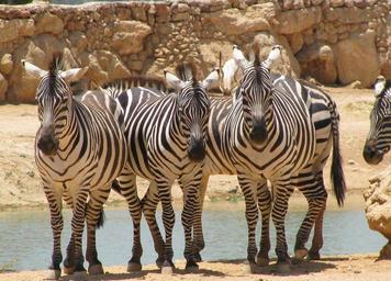 Keywords: zebra front animal wild mammal striped creature looking herbivore herbivorous hoof fauna equus waterhole species vertebrate