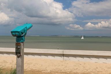 Keywords: zeeuws vlaanderen province zeeland netherlands breskens coast dunes sand sea sky sailing boat binoculars