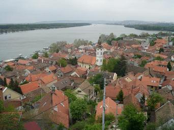 Keywords: Zemun center from Millenium Tower.JPG Zemun Serbia with the river Danube in the background as seen from the Gardoš Millenium Tower 2014-04-16 13 42 24 own Jan Pešula cc-zero Uploaded with UploadWizard Zemun