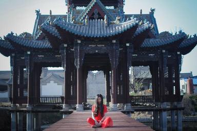 Keywords: zen china wind portrait woman red grace a separate sat entrance tori temple asia meditation