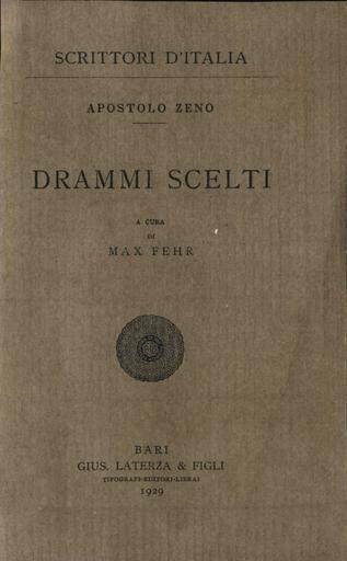 | Keywords: Zeno - Drammi scelti, 1929 - 1970951 C.jpeg Book Zeno Apostolo Drammi scelti G Laterza Bari ita it Drammi scelti / Apostolo Zeno ; a cura di Max Fehr - Bari G Laterza 1929 - 289 p ; 22 cm - Scrittori d'Italia ; 117 http //gutenberg beic it/webclient/DeliveryManager pid 1970951 search_terms DTL4 BEIC 1970951 Institution BEIC PD-old-100-1923 Letteratura drammatica italiana - Sec 17 -18 Literature of Italy | ||||