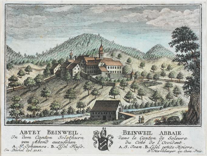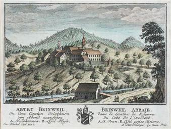 | Keywords: Zentralbibliothek Solothurn - ABTEY BEINWEIL In dem Canton Solothurn von Abend anzusehen A St Johannes B Lisel Fluss WappenBEINWEIL ABBAIE Dans le Canton de Soleure du Côté de lOccident A S Jean B Lisel petite Riviere - a0244.tif Artwork Creator Emanuel Büchel Blick von W auf das Kloster Beinwil im Vordergrund die Lüssel und die Passwangstrasse im Hintergrund die Chastenflue Staffagefiguren View from west of the Beinwil Abbey in the foreground is the Lüssel Passwangstrasse in the background Chastenflue Decorative figures ABBAIE de BEINWEIL Dans le Canton de Soleure du Côté de l'Occident between 1757 1758 Technique Copper engraving paper colored Size mm 145 84 institution Zentralbibliothek Solothurn object history credit line accession number Call number a0244 Zentralbibliothek Solothurn Public domain Information field ZBS form heading Vedute Information field ZBS form heading Landschaftsbild Zentralbibliothek Solothurn PD-old-70-1923 Historical images of the Beinwil Abbey Emanuel Büchel Selection photos GLAMWiki-Switzerland |