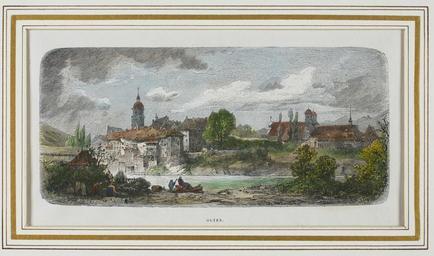 | Keywords: Zentralbibliothek Solothurn - OLTEN - a0793.tif Artwork Adolf fils Closs Information field Engraver Adolf fils Closs Blick vom rechten Aareufer Richtung SW auf die Altstadt mit gedeckter Brücke neue Stadtkirche und Kapuzinerkloster im Vordergrund Staffagefiguren between 1840 1860 Technique Wood engraving paper colored Size mm 190 87 institution Zentralbibliothek Solothurn object history credit line accession number Call number a0793 Zentralbibliothek Solothurn Public domain Information field ZBS form heading Vedute Information field ZBS form heading Ortsansicht Zentralbibliothek Solothurn PD-old-70-1923 Historical images of Olten 19th-century wood engravings Old city of Olten |