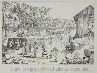 | Keywords: Zentralbibliothek Solothurn - Platz des projectirten NationalMuseums - a0877 2.tif Artwork Creator Heinrich Jenny Eine Baustelle ungefähr auf dem Platz der ehemaligen Schulschanze in der allerlei Volk sich aufhält berät hinzustömt und Karren ablädt möglicherweise Abbruch der Schulschanze; im Hintergrund Kapitelhaus und Schulhaus bei der St -Ursen-Kirche 1880 Lithographie Size mm 169 115 institution Zentralbibliothek Solothurn object history credit line accession number Call number a0877_2 Zentralbibliothek Solothurn Public domain Information field ZBS form heading Vedute Information field ZBS form heading Karikatur Zentralbibliothek Solothurn PD-old-70-1923 Historical images of Solothurn Heinrich Jenny |