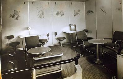 | Keywords: hindenburg indoor Call No.: 12_00187 Corp. Name: Zeppelin Subject: Zeppelin Notes: ""Zeppelin reading and writing room: part of the passenger quarters on the A/S Hindenburg. Other public rooms aboard the trans-Atlantic air express are a spacious lounge, dining room and smoking room bar. The Hindenburg carries 70 passengers and more than ten tons of mail and express, and makes the crossing from the United States to Central Europe in two days."" Description: 7 x 9 Black and White Photo Call No.: 12_00187 Corp. Name: Zeppelin Subject: Zeppelin Notes: ""Zeppelin reading and writing room: part of the passenger quarters on the A/S Hindenburg. Other public rooms aboard the trans-Atlantic air express are a spacious lounge, dining room and smoking room bar. The Hindenburg carries 70 passengers and more than ten tons of mail and express, and makes the crossing from the United States to Central Europe in two days."" Description: 7 x 9 Black and White Photo |