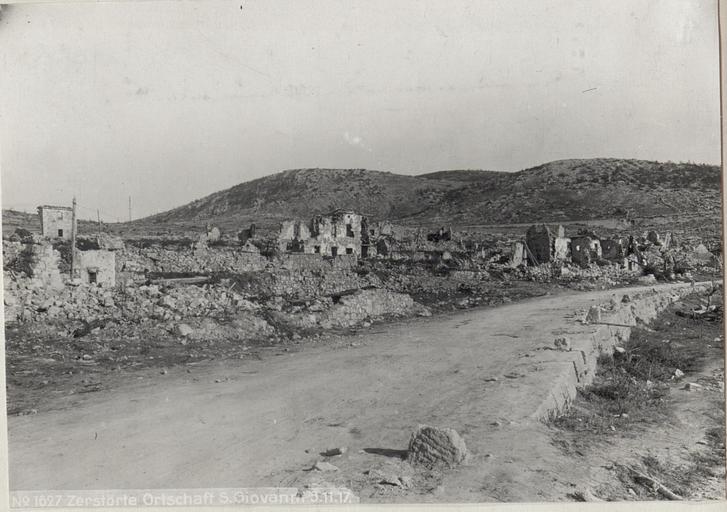 | Keywords: Zerstörte Ortschaft S.Giovanni 3.11.17. (BildID 15607816).jpg depicted place austria de K u k Kriegspressequartier Lichtbildstelle - Wien credit line Österreichische Nationalbibliothek - Austrian National Library http //www bildarchivaustria at/Preview/15607816 jpg<br>Catalog http //www bildarchivaustria at/Pages/ImageDetail aspx p_iBildID 15607816 accession number WK1/ALB075/21699 http //creativecommons org/publicdomain/mark/1 0/ el Α΄ Παγκόσμιος Πόλεμος en World War I zh 第 次世界大战 ca Primera Guerra Mundial it Prima guerra mondiale cs První světová válka cy Y Rhyfel Byd Cyntaf hy Առաջին համաշխա հային պատե ազմ ga An Chéad Chogadh Domhanda eu Lehen Mundu Gerra et Esimene maailmasõda gl Primeira Guerra Mundial es Primera Guerra Mundial ru Пе вая ми овая война az Birinci dünya müharibəsi pt Primeira Guerra Mundial no Første verdenskrig tr I Dünya Savaşı lv Pirmais pasaules karš lt Pirmasis pasaulinis karas ro Primul Război Mondial ar الحرب العالمية الأولى is Fyrri heimsstyrjöldin pl I wojna światowa yi ערשטע ווע ט מ חמה be Пе шая сусветная вайна fr Première Guerre mondiale bg Пъ ва световна война hr Prvi svjetski rat de Erster Weltkrieg hu Első világháború hi प्रथम विश्वयुद्ध bs Prvi svjetski rat fi Ensimmäinen maailmansota da 1 verdenskrig ja 第 次世界大戦 he מ חמת העו הראשונה ka პირველი მს ფლი მი sr П ви светски ат sq Lufta e Parë Botërore ko 1차 세계 전 sv Första världskriget mk П ва светска војна sk Prvá svetová vojna gd An Cogadh Mòr uk Пе ша світова війна sl Prva svetovna vojna PD-old-80-1923 Kriegspressequartier Alben 1914 - 1918 Images uploaded by Fæ Photographs taken on 1917-11-03 |