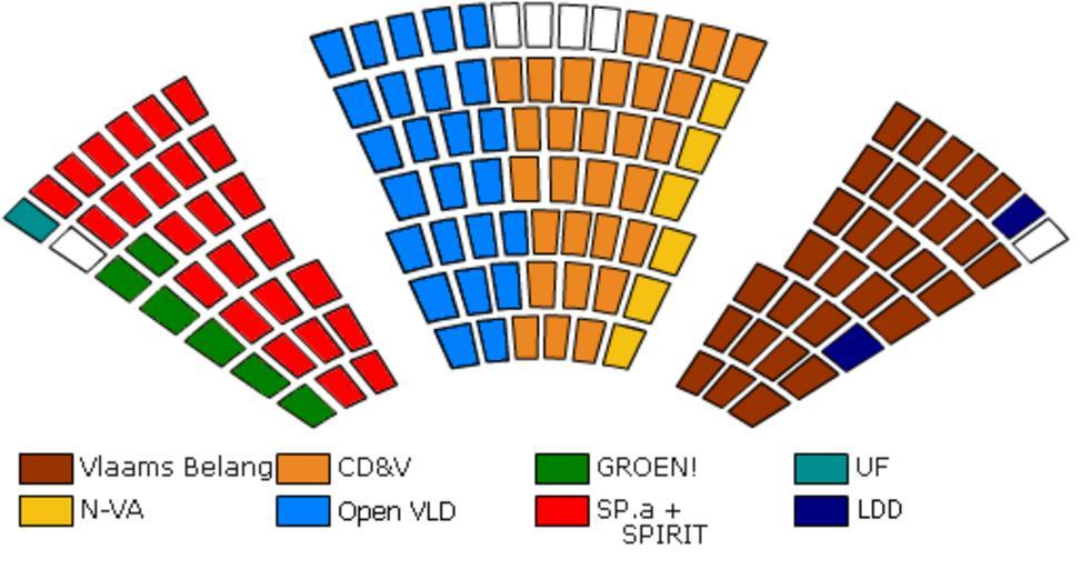| Keywords: Zetelverdeling VlaamsParlement.png De zetelverdeling van het Vlaams Parlement Gebaseerd op de zetelverdeling te vinden op www vlaamsparlement be Maar dan zwaar aangepast Transfered from http //nl wikipedia org nl wikipedia 2006-01-27 Original uploader was Didius at http //nl wikipedia org nl wikipedia Later version s were uploaded by Peephole at http //nl wikipedia org nl wikipedia Released into the public domain by the author nl wikipedia Didius Original upload log page nl wikipedia Zetelverdeling_VlaamsParlement png 2007-08-24 14 43 Peephole 518×270×8 34288 bytes <nowiki> </nowiki> 2006-01-27 18 26 Didius 508×262×8 110877 bytes <nowiki>Versie die beter overeenkomt met die van de kamer</nowiki> 2006-01-27 14 41 Didius 402×229×8 77587 bytes <nowiki>had verkeerde versie geupload</nowiki> 2006-01-27 14 40 Didius 402×229×8 78213 bytes <nowiki>De zetelverdeling van het Vlaams Parlement Gebaseerd op de zetelverdeling te vinden op www vlaamsparlement be Maar dan zwaar aangepast </nowiki> Flemish Parliament Election apportionment diagrams of Belgium |